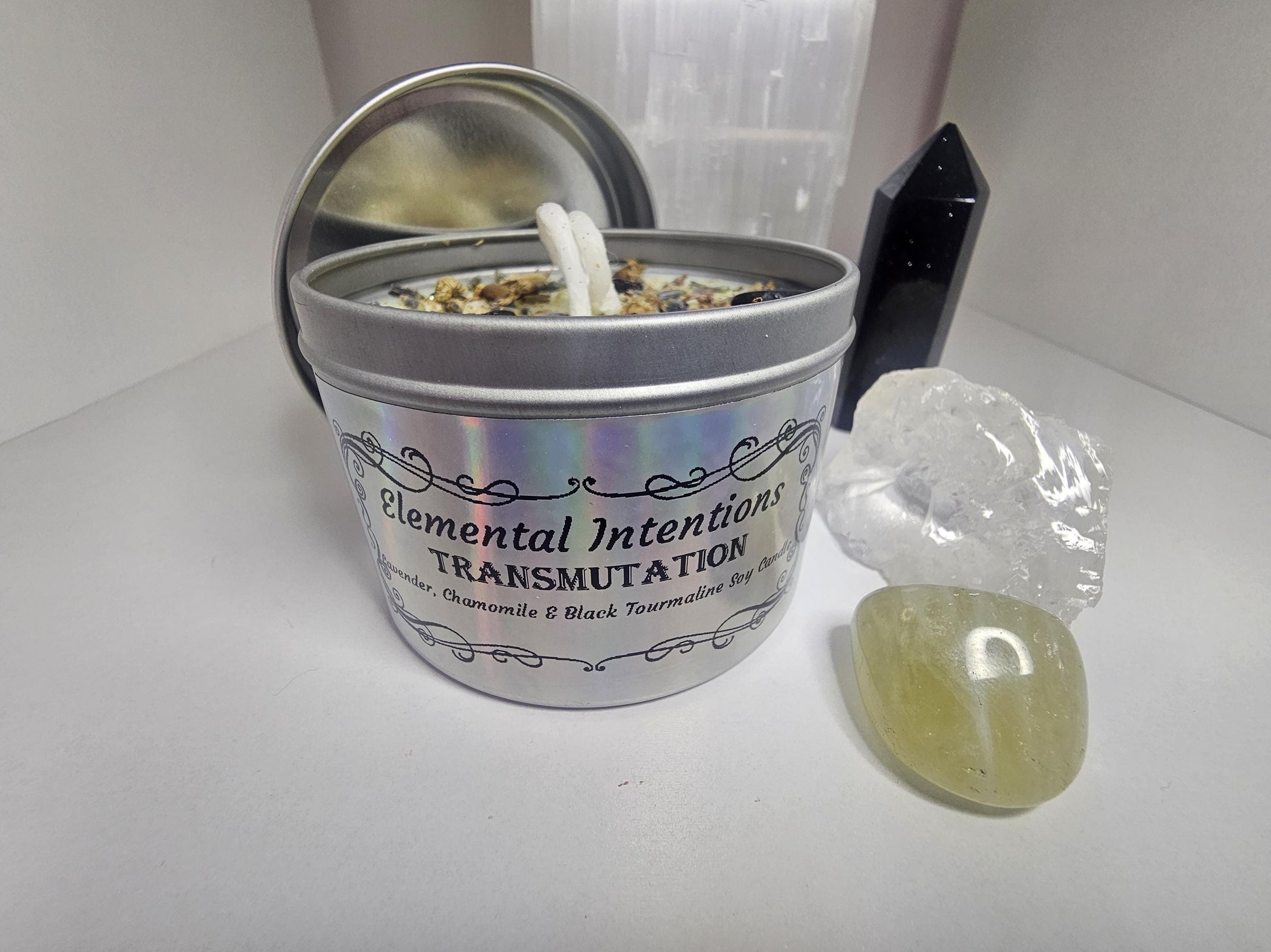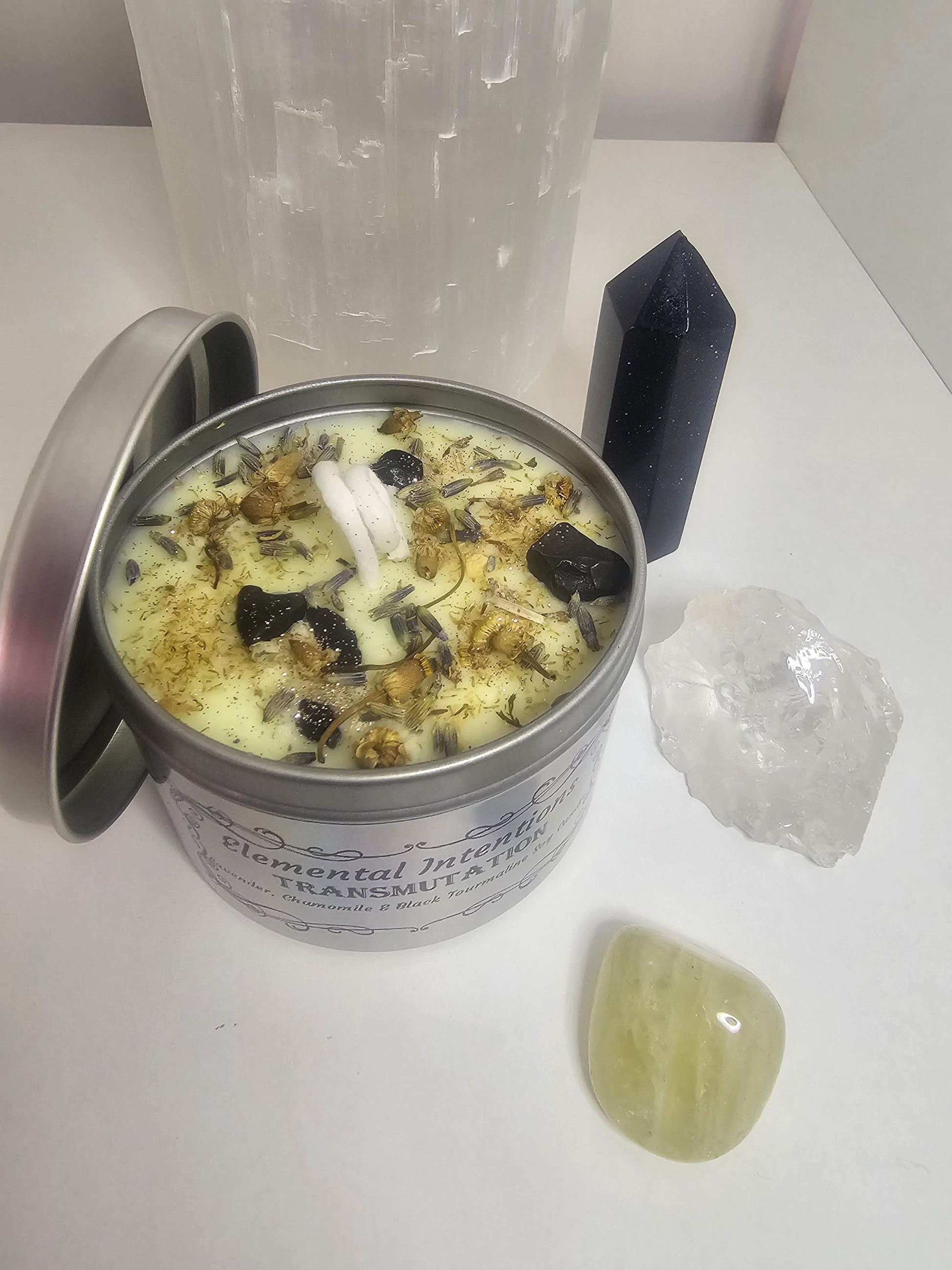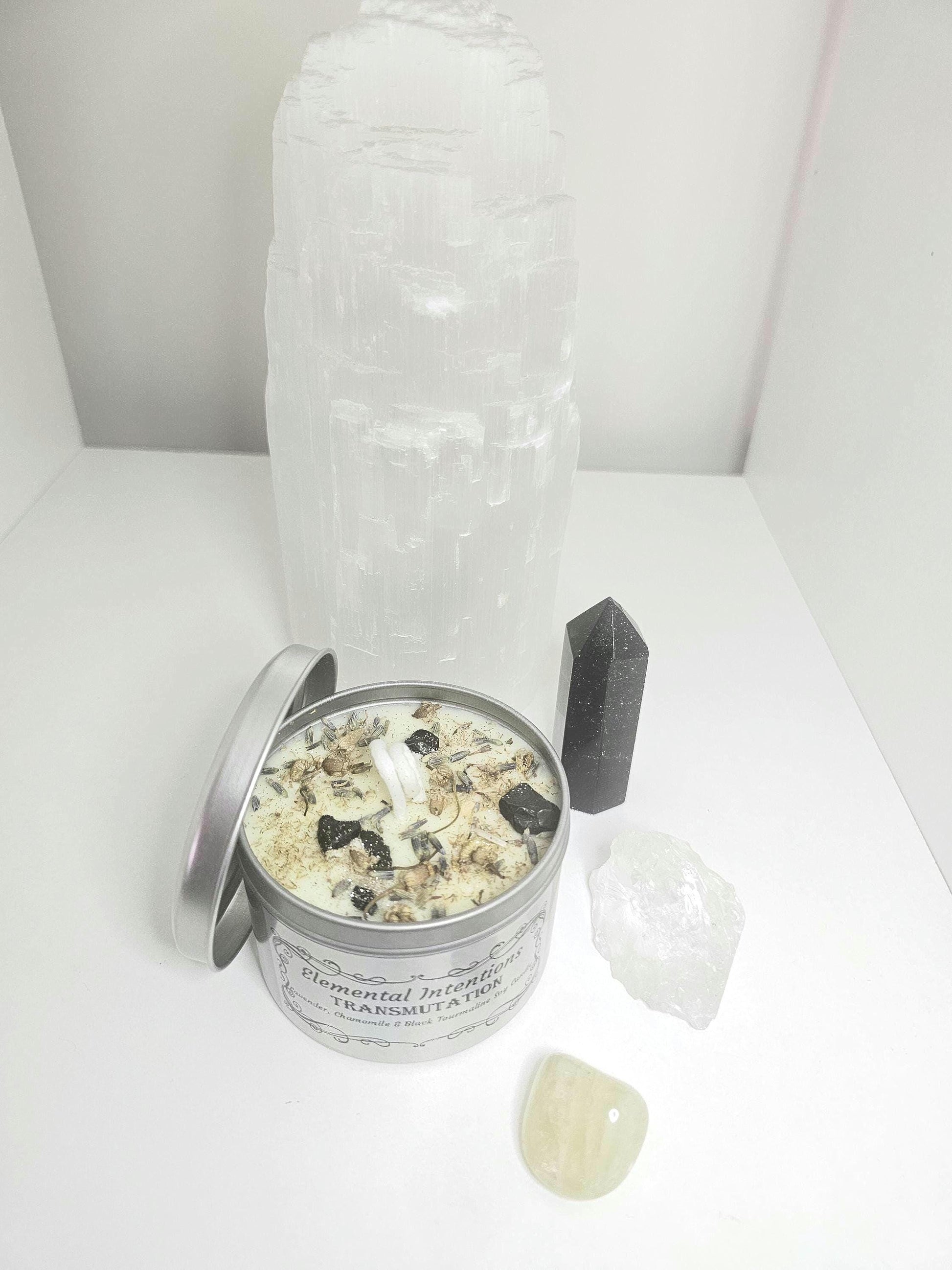 "Lavender, Chamomile and Black Tourmaline 'Transmutation' Soy Wax Ritual Candle" -
